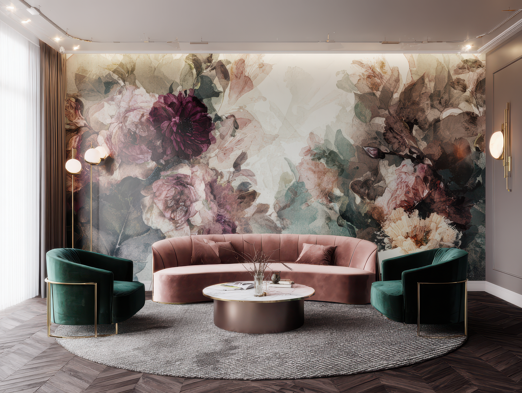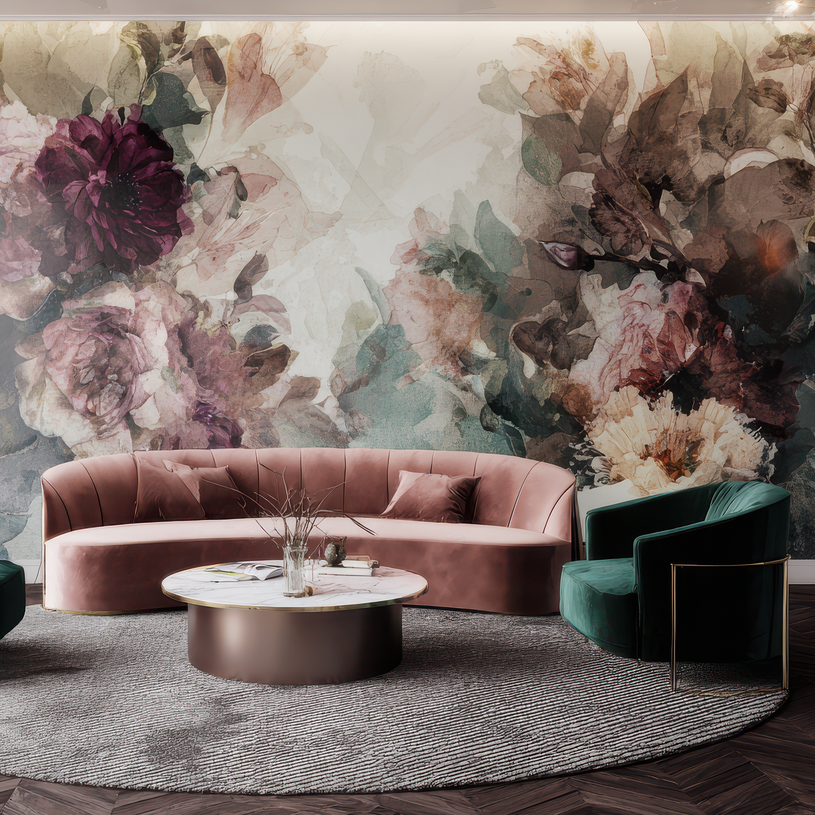 To wzór dla osób, które nie boją się koloru, ale szukają go w wyrafinowanej formie. Miętowa zieleń wprowadza do pomieszczenia powiew świeżości i optycznie je otwiera, podczas gdy głęboki fiolet i śliwka dodają aranżacji elegancji i tajemniczości. Białe tło sprawia, że całość, mimo bogactwa barw, pozostaje lekka i nie przytłacza przestrzeni.