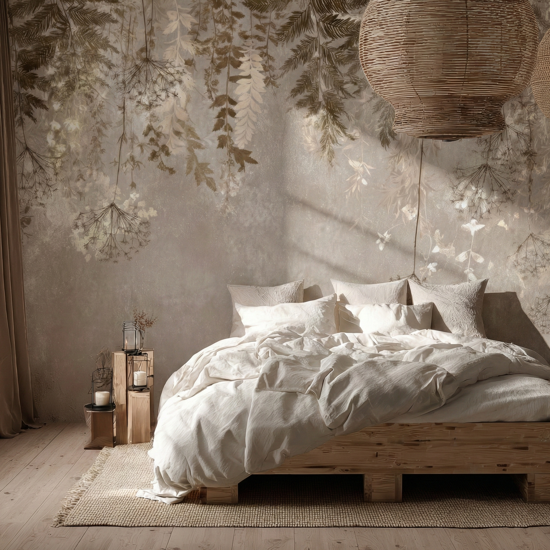 Stwórz klimat starej zielarni lub wiejskiego dworku. Fototapeta wiszący ogród z motywem suszonych ziół i kwiatów to ukłon w stronę natury i tradycji.