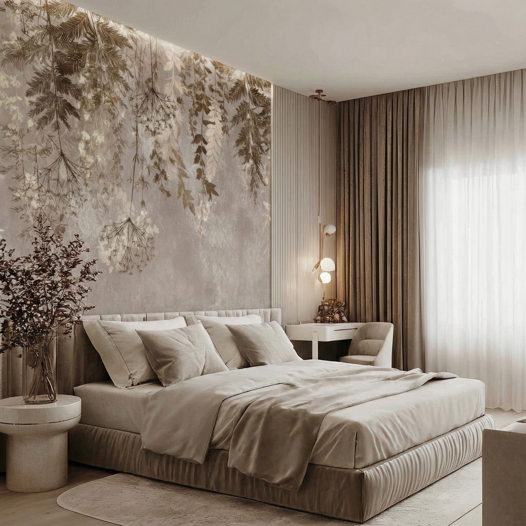 • Unikalna kompozycja: Wzór skupiony w górnej części tapety.